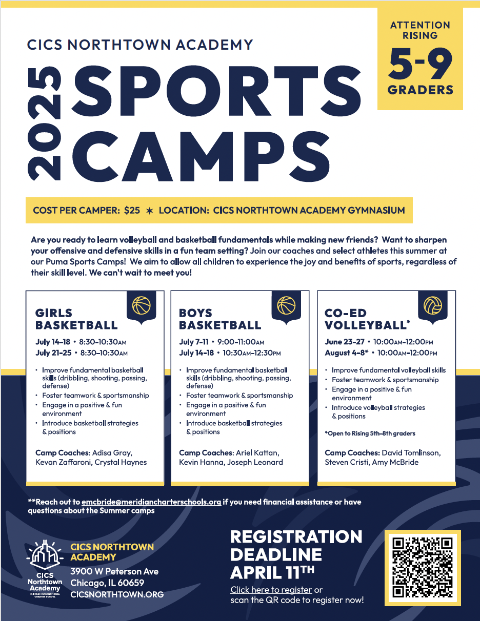 Get ready for an action-packed summer at CICS Northtown! Our Sports Camps are designed for athletes of all skill levels who want to enhance their game, stay active, and have fun. Whether you’re into basketball, soccer, football, or more, our expert coaches will help you develop your skills. Don’t miss this opportunity—sign up today!